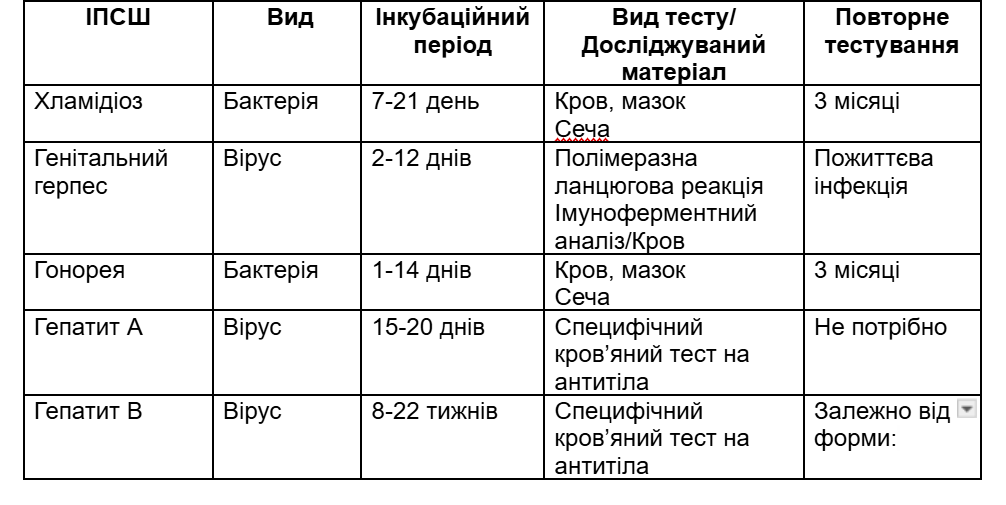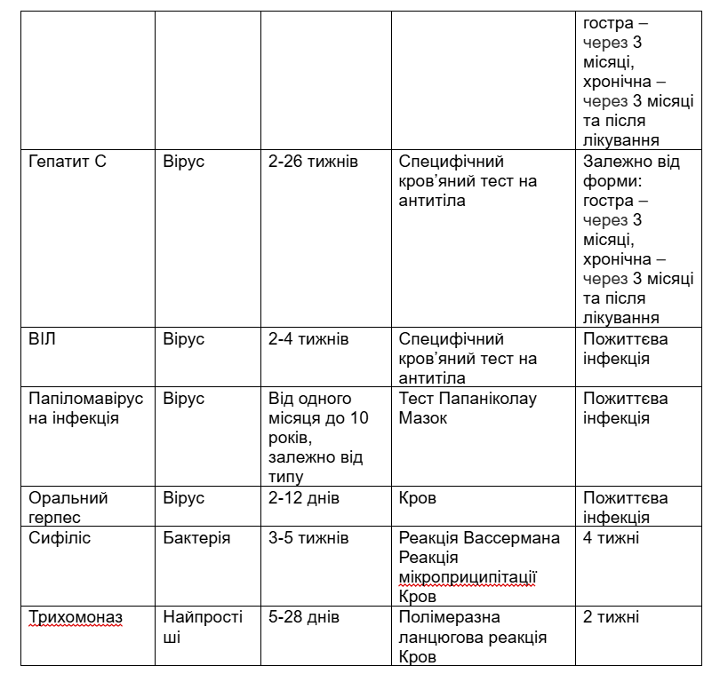 Важливо знати не тільки, які інфекції взагалі є, а й скільки часу потрібно, щоб інфекція виявилася під час тесту. Або через який час після контакту почнуть з’являтися симптоми. Або куди звернутися при виявленні чогось підозрілого.